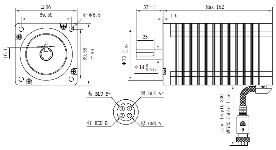 CNC Stepper Motor NEMA 34 6.0A 12Nm/1704oz.in 86x152mm Φ14mm Keyway Shaft