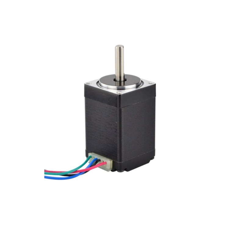 This engine is a bipolar NEMA 11 stepper motor with step angle 1.8deg and size 28x28x45mm. It has 4 wires, each phase draws 0.67A with holding torque 10Ncm(14.16oz.in).