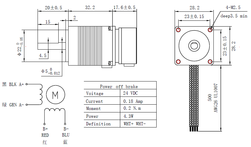 - Holding Torque: 0.07Nm(9.9oz.in)
