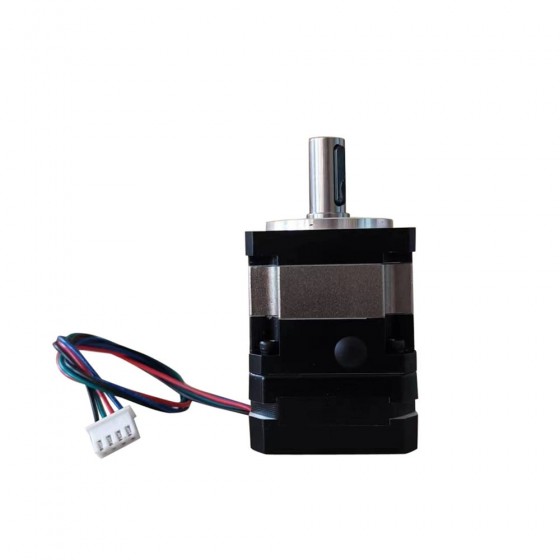 This NEMA 17 geared reduction stepper motor has a short body length 20mm and 1.0A rated current and is integrated with one high precision & low backlash planetary gearbox of 100:1 gear ratio, which generates a strong holding torque otuput upto 5Nm/710oz.in & a very low speed 0-10rpm. It's an ideal solution to the applications that require limited space but low speed and high torque.