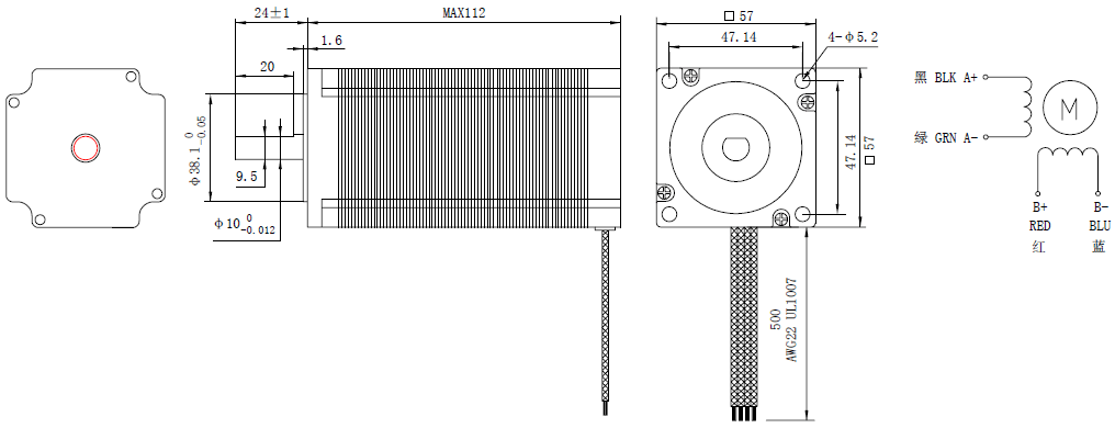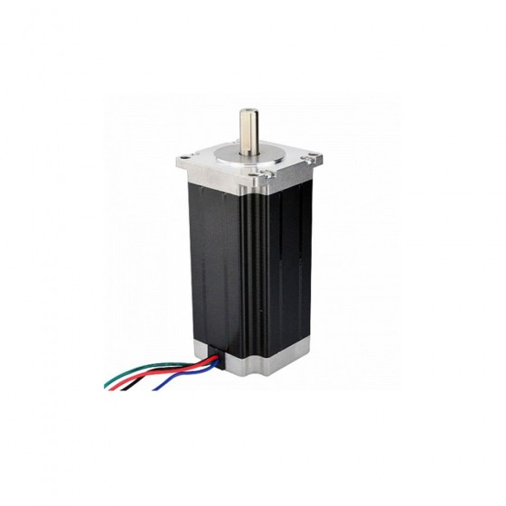 This is the strongest bipolar NEMA 23 stepper motor with size 57x57x113mm. It has 4 wires, each phase draws 4.2A, with holding torque 3Nm/426oz.in. Please note the outout shaft diameter is 10mm.