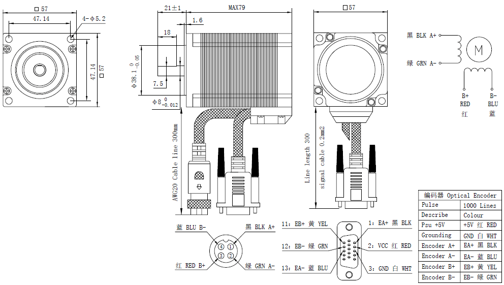 This big closed-loop NEMA 23 stepper motor, which is integrated with a 1000cpr optical incremental encoder, has a rated current of 3.5A and a holding torque of 1.2Nm(170.4oz.in). it performs more accuracy, higher torque, less motor heating, lower power consumption, and better response to external factors, compared to the open loop stepper motors.