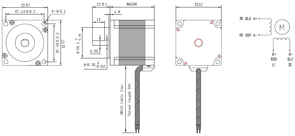 NEMA 23 Stepper Motor Bipolar 0.9deg 2.8A 1.15Nm/163.3oz.in 57x56mm Φ6.35mm Shaft