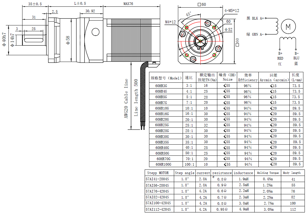 This NEMA 23 geared reduction stepper motor has a moderate body length 76mm and 4.2A rated current and is integrated with a precision round flange planetary gearbox of 100:1 gear ratio, which generates a strong holding torque otuput upto 10Nm/1420oz.in & a very low speed 0-10rpm. It's an ideal solution to the applications that require limited space but low speed and high torque.