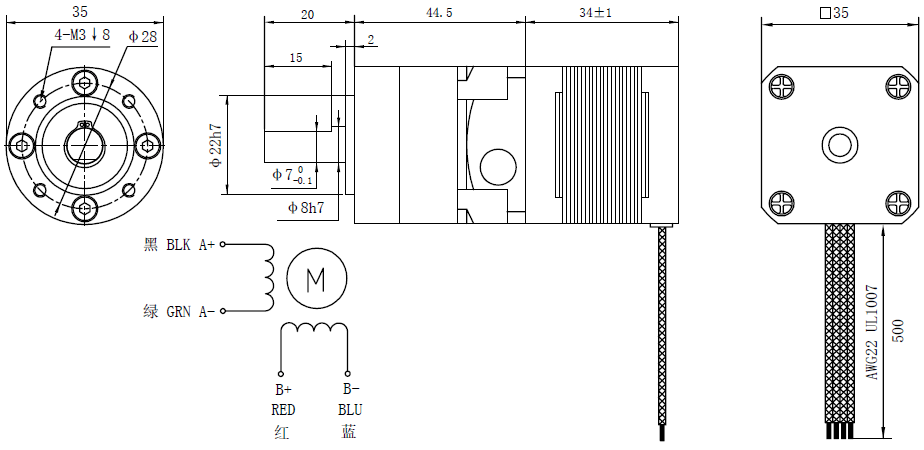 This geared NEMA 14 stepper motor has 34mm body and 1.0A rated current, integrated with one size Φ35mm round precision planetary gearbox of gear ratio 20:1. It's a ideal solution to the applications that require limited space but low speed and high torque.
