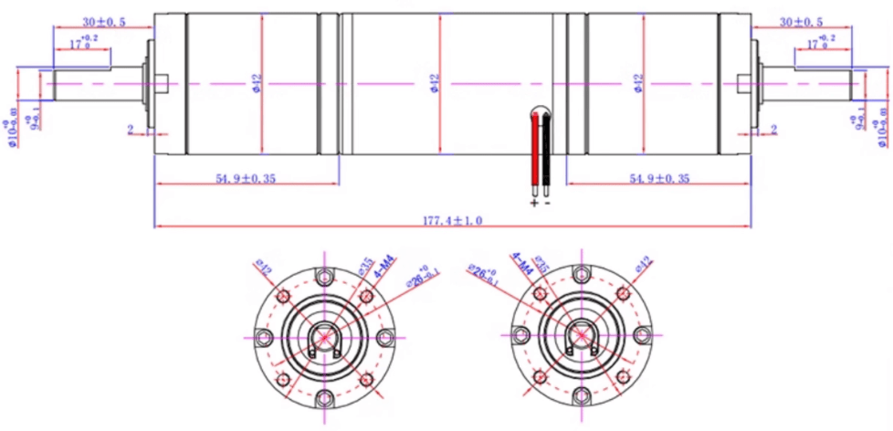 12V 160RPM 2.5Nm Φ42mm Double Head Geared DC Motor Reduction Planetary Gearbox