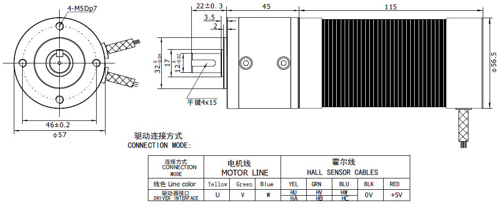 This strong 57HS115-24P-HG series dc geared motor is a 24V diameter Φ57mm round brushless intagrated with a size 57mm round planetary gearbox. It leads to speed range of 40RPM to 1500RPM and holding torque upto 40Nm. Because of the brushless design, this micro geared motor has higher efficiency, higher power-to-weight ratio, faster response time, longer lifespan, more merits compared to general dc motors. It is widely used in household appliances, office automation, bank equipment, medical devices, intelligent robots, etc.
