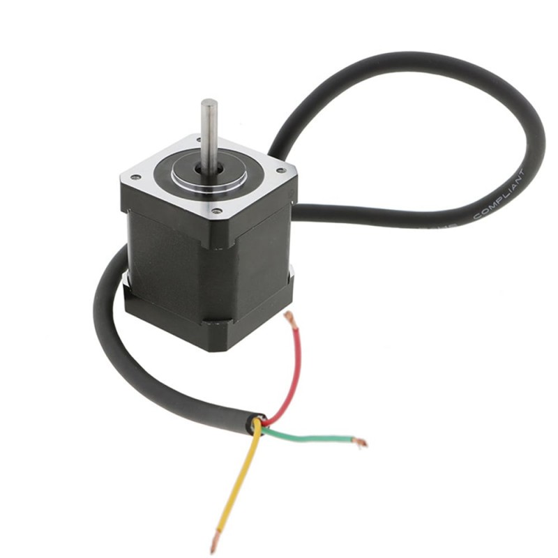 This compact electric dc motor is a 3 Phase NEMA 17 stepper motor with 1.2degree step angle/300 steps per revolution & size 42x47mm, which can generates a good torque 0.32Nm/45.44oz.in and 0-1000RPM.