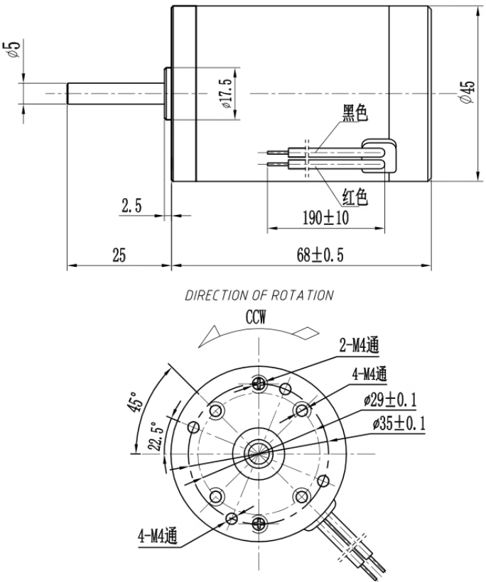 This size 45mm electric motor is a standard 24 voltage brushed permanent magnetic DC motor. It generates a power 30W and a rated torque 0.085Nm at 6000RPM.