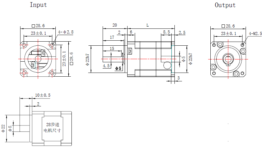 This size 28mm high-precision planetary gearbox has a gear ratio 50:1 and a maximum 15arcmin low backlash. And this FGS11 in-line planetary reducer has a built-in input shaft coupling so it can commonly match the NEMA 11 stepper motor with a diameter of 5mm and a shaft length of 10mm or other motors who also has the same flange frame size. It's an excellent solution to applications that require good accuracy and reliability at an exceptional value