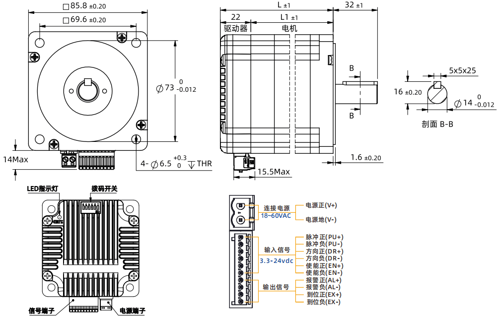 • Pulse direction & dual pulse control, I/O control, and upper computer command control