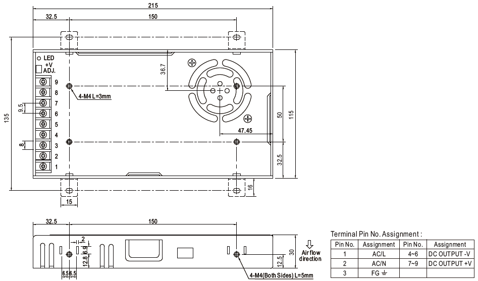 • AC Input Voltage: 90-130VAC/180-260VAC