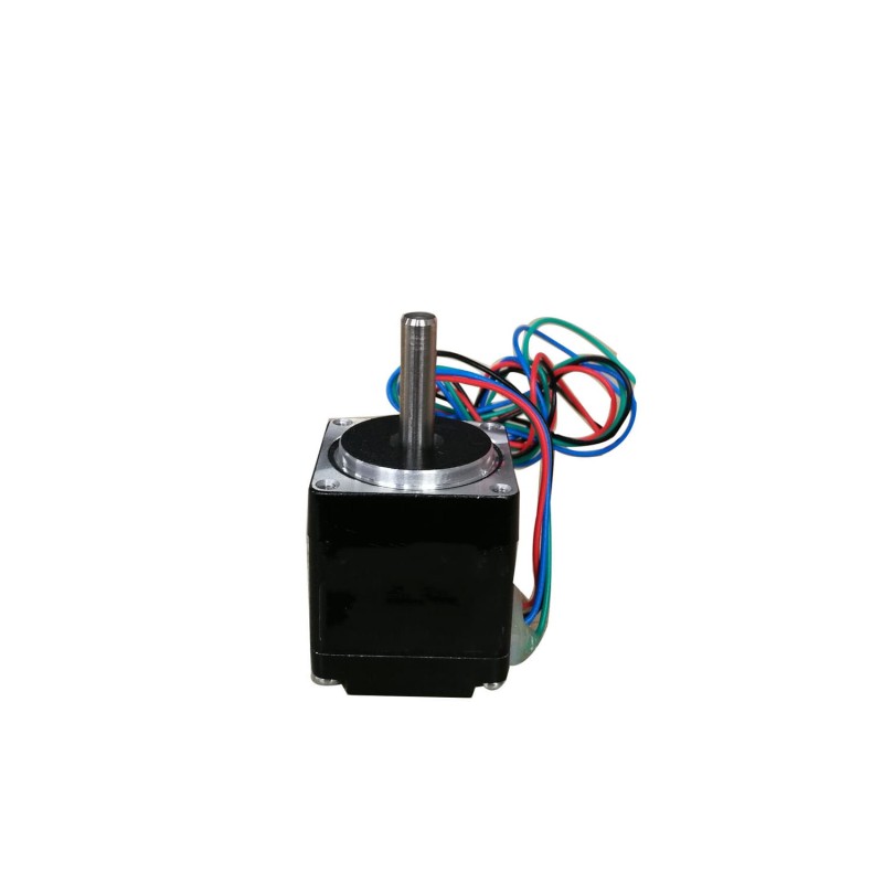 This small engine is a bipolar NEMA 11 stepper motor with step angle 1.8deg and size 28x28x33mm. It has 4 wires, each phase draws 0.67A with holding torque 7Ncm(9.91oz.in).