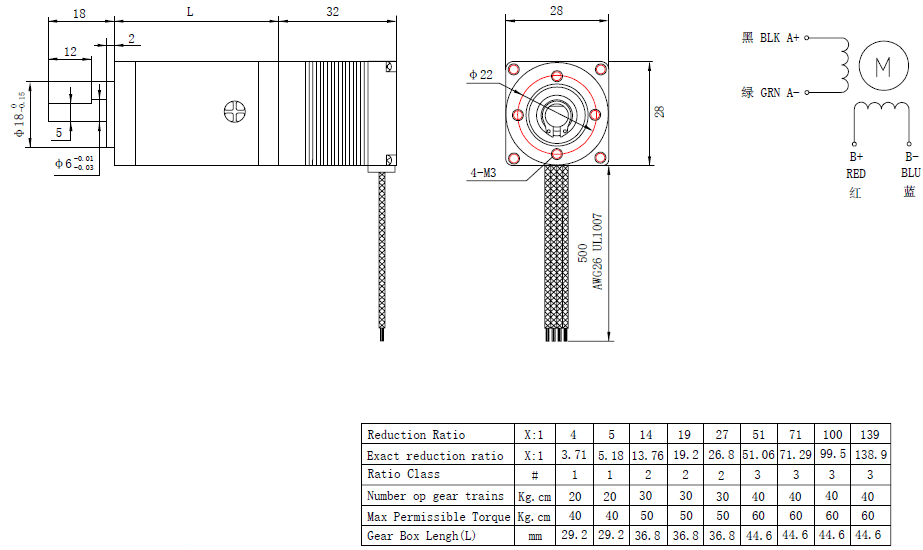 NEMA 11 Stepper Motor Bipolar L=32mm 0.67A with Gear Ratio 14:1 Economy Planetary Gearbox