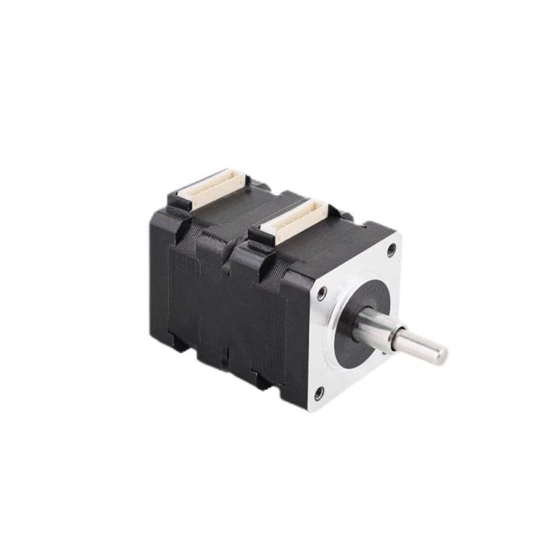 This NEMA 14 assembled stepper motor combines two small NEMA 14 stepper motors together so it has two output shafts: inner shaft and out shaft, which can achieve the motor's positive and negative rotation at the same time.