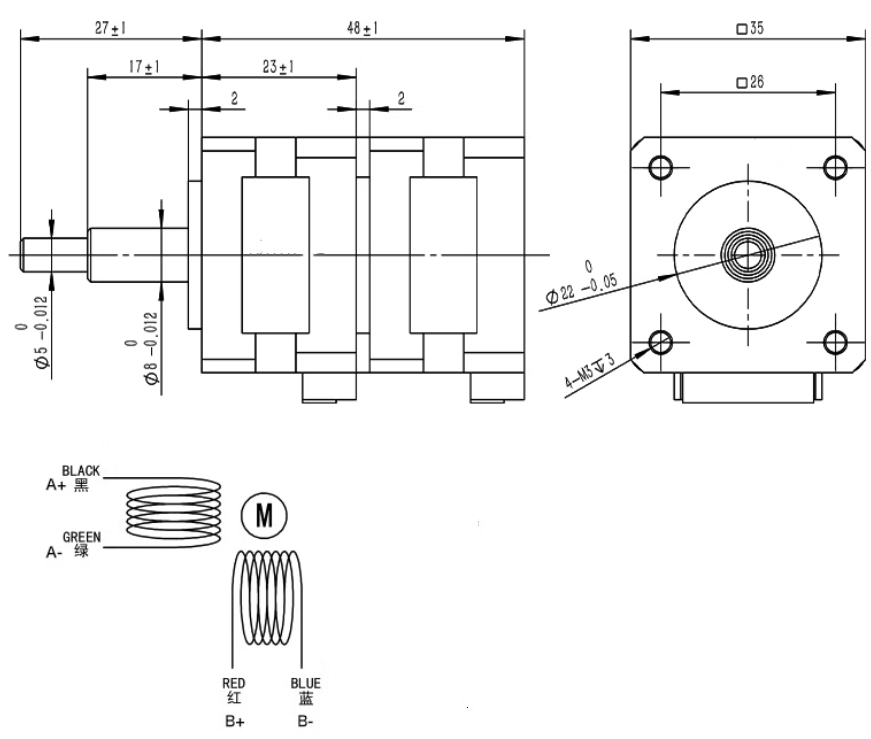 NEMA 14 Assembled Stepper Motor 0.15Nm/21.3oz.in 35x35x48mm 4 Wires