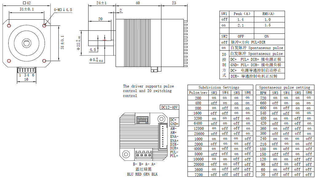 This integrated motor is a NEMA 17 stepper motor with a holding torque of 0.45Nm/63.9oz.in, integrated with a digital stepper drive. Its compact size can save mounting space, eliminate motor wiring time, reduce interference, and cut cable and labor costs, etc and it is widely usedf in many industrial applications such as CNC, 3D printer, stage equipment, medical, electronics, packaging, etc.