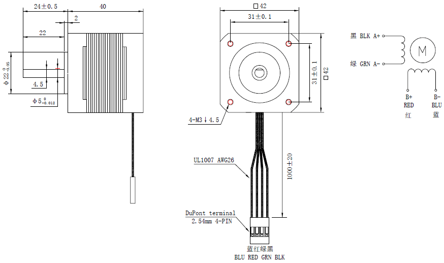 This hot SALE NEMA 17 stepper motor has 40mm body length with 1m cable and 2.54mm pitch DuPont connector, each phase draws current 2.0A with holding torque 0.45Nm/63.9oz.in. It is exactly an ideal choice for RepRap Prusa, Mendel 90, Rostock and similar 3D printers, as well as CNC and robotics applications.