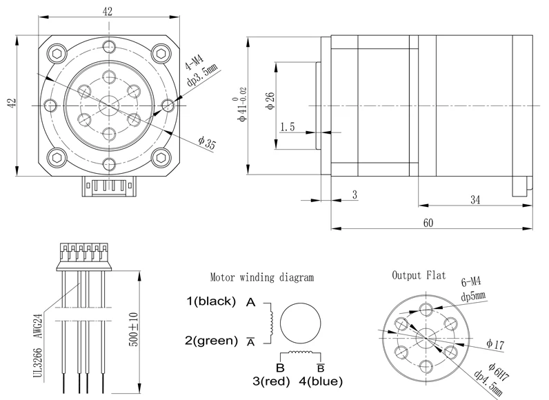 • Holding Torque: 0.3Nm/42.6oz.in