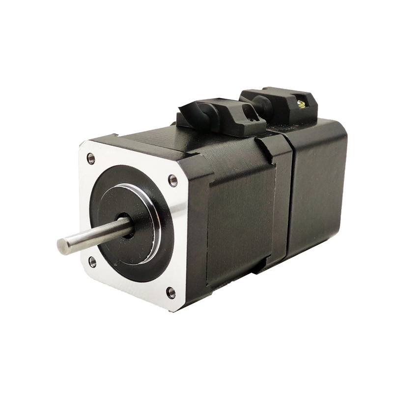 This compact size 42mm NEMA 17 stepper motor has a good holding torque 0.59Nm/83.78oz.in with rated current 2.0A, integrated with a 24V electromagnetic brake. The brake will pause the motor shaft rotation in a very short time while the brake power is off. Frankhumotor's brake motors are absolutely an ideal solution for the machines that require frequently work and stop under vertical operation.