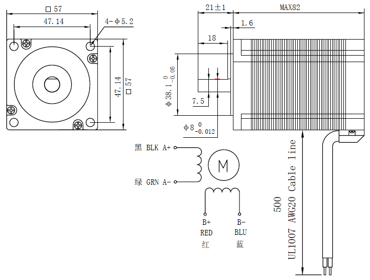 NEMA 23 Stepper Motor Bipolar 1.8deg 4.0A 2.4Nm/340.8oz.in 57x82mm Φ8mm Shaft
