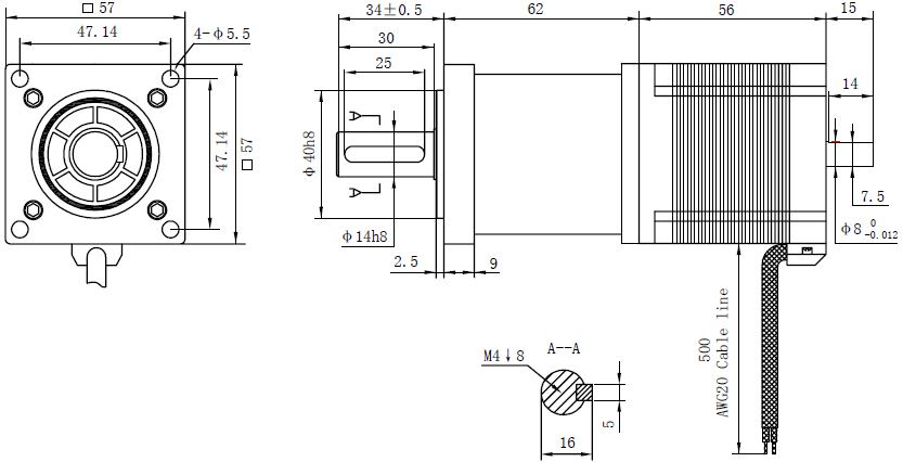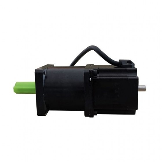 This NEMA 23 geared reduction dual shaft stepper motor has a moderate body length 56mm and 2.8A rated current and is integrated with a precision planetary gearbox of 50:1 gear ratio, which generates a strong holding torque otuput upto 40Nm/5680oz.in & a very low speed 0-20rpm. A length of 15mm rear shaft is available.