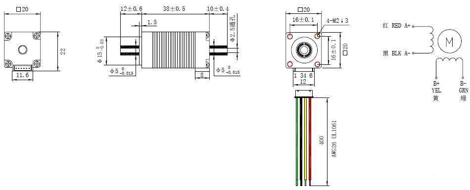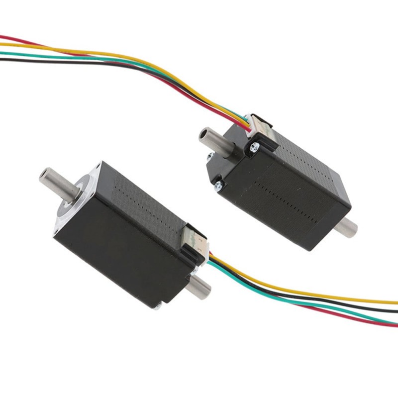 This small size 20mm NEMA 8 hollow shaft stepper motor has a body length 38mm with 0.6A rated current & holding torque 0.04Nm/5.68oz.in. A hollow shaft with outer diameter Φ5.0mm & inner diameter Φ2.5mm is available and also a double shaft with a short front shaft length of 12mm and rear shaft length 10mm is designed.