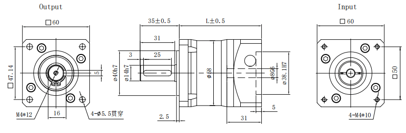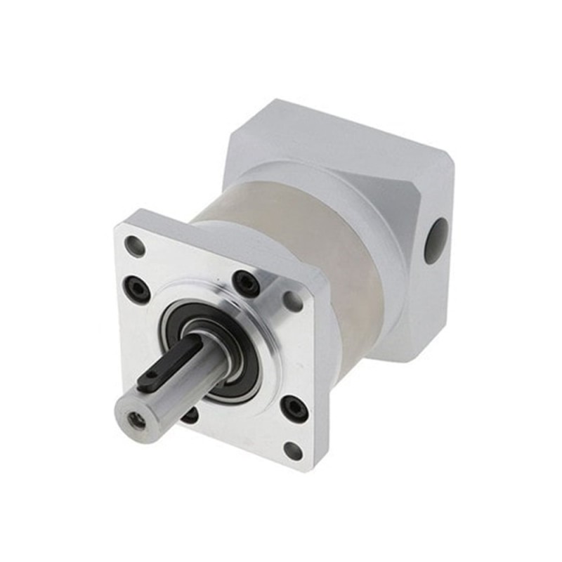 This PLF60 series round high-precision planetary gearbox has a gear ratio 50:1 and a maximum 20arcmin backlash. It's an excellent solution to applications that require optimal accuracy and reliability at an exceptional value. This inline planetary gearbox has a built-in input shaft coupling so it can match any standard 8mm diameter shaft of NEMA 24 stepper motor and brushless dc motor or other motors.